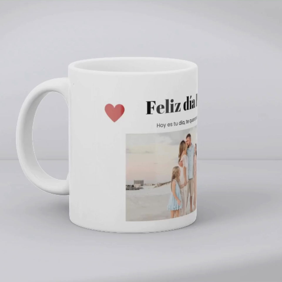 - Taza "PAPÁ TE QUEREMOS MUCHO" con 4 fotos: un regalo ideal para el Día del padre o cualquier ocasión en la que quieras demostrar tu amor y aprecio a tu padre con un toque personal.