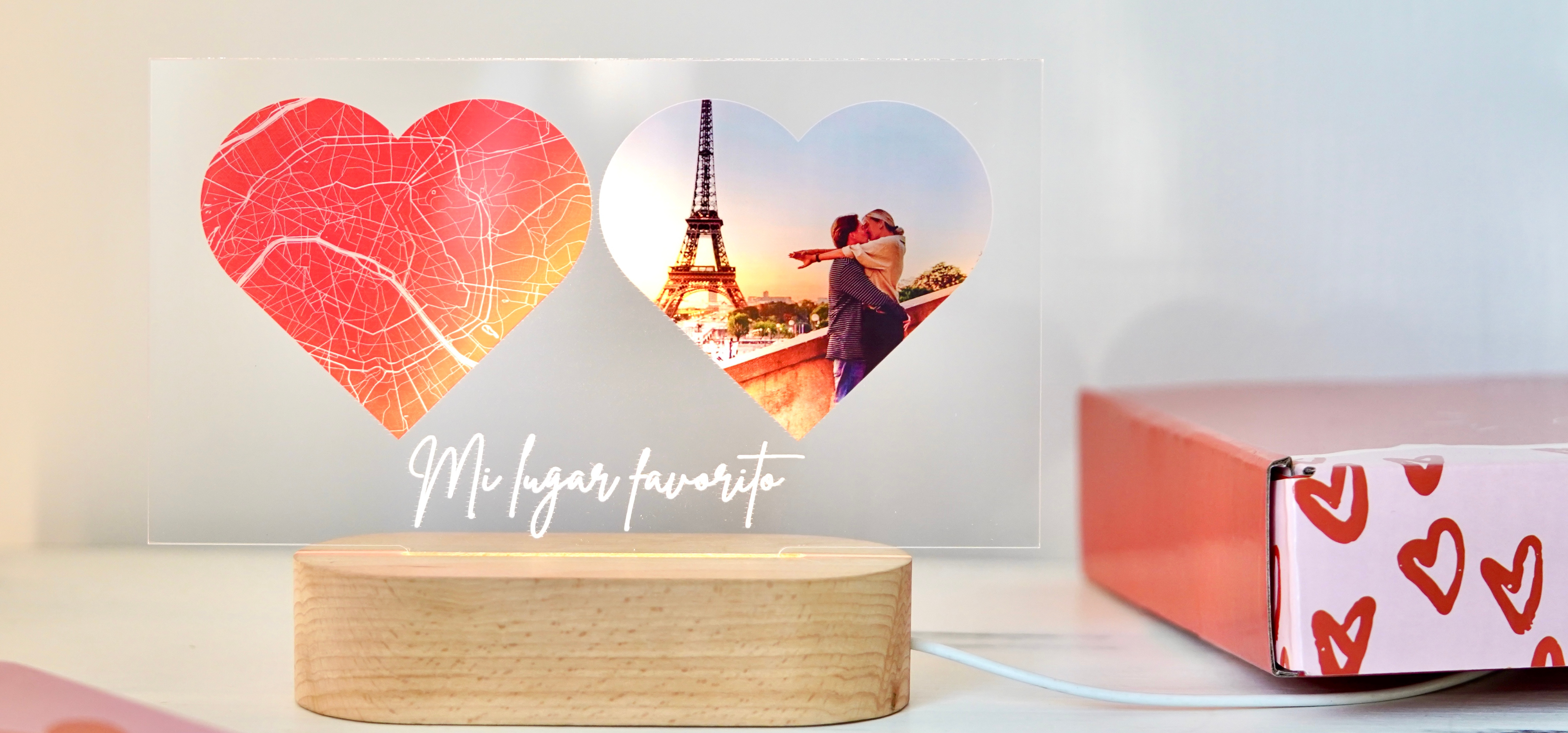 Regalo especial para San Valentín, lampara personaliza con dos imágenes y texto. Regala recuerdos a tu persona favorita con esta lampara personalizada