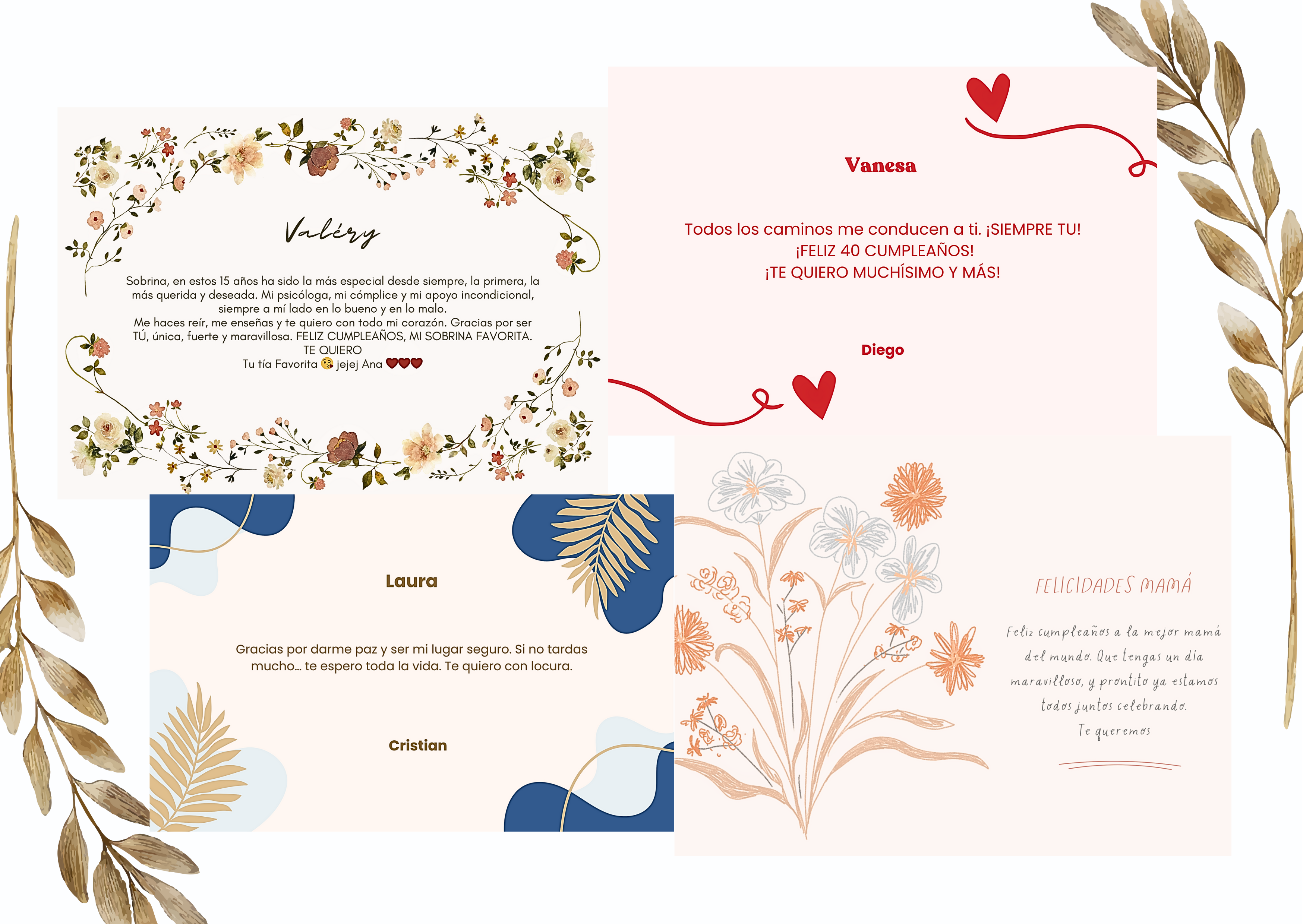 A veces, las palabras perfectas merecen un envase especial. Las tarjetas personalizadas no son simples papeles: son puentes emocionales que llevan mensajes cargados de amor, gratitud, celebración o apoyo.