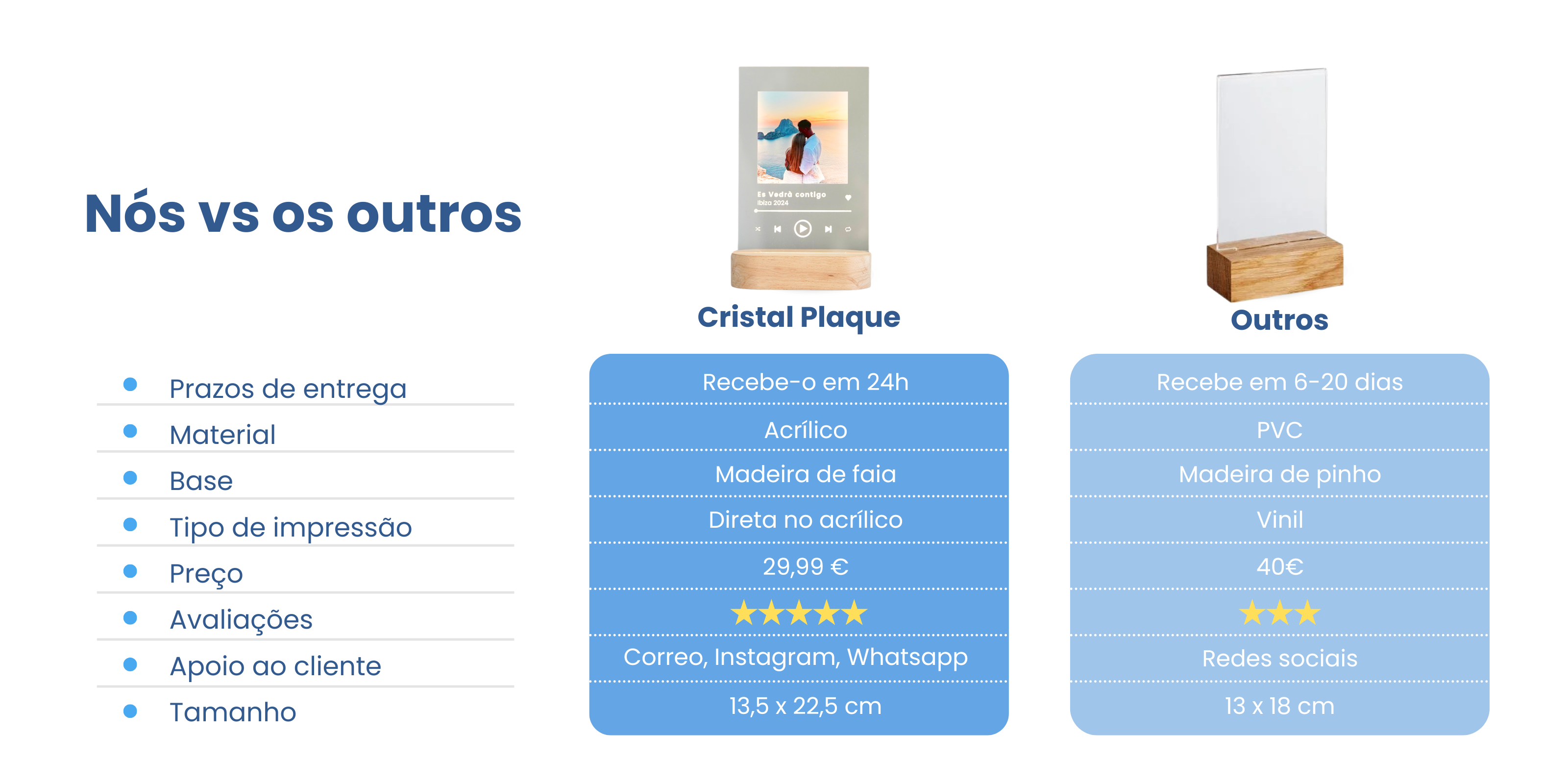 As nossas lâmpadas incluem sempre a placa personalizada e a base luminosa com ligação USB universal, que te permite ligá-la onde quiseres.