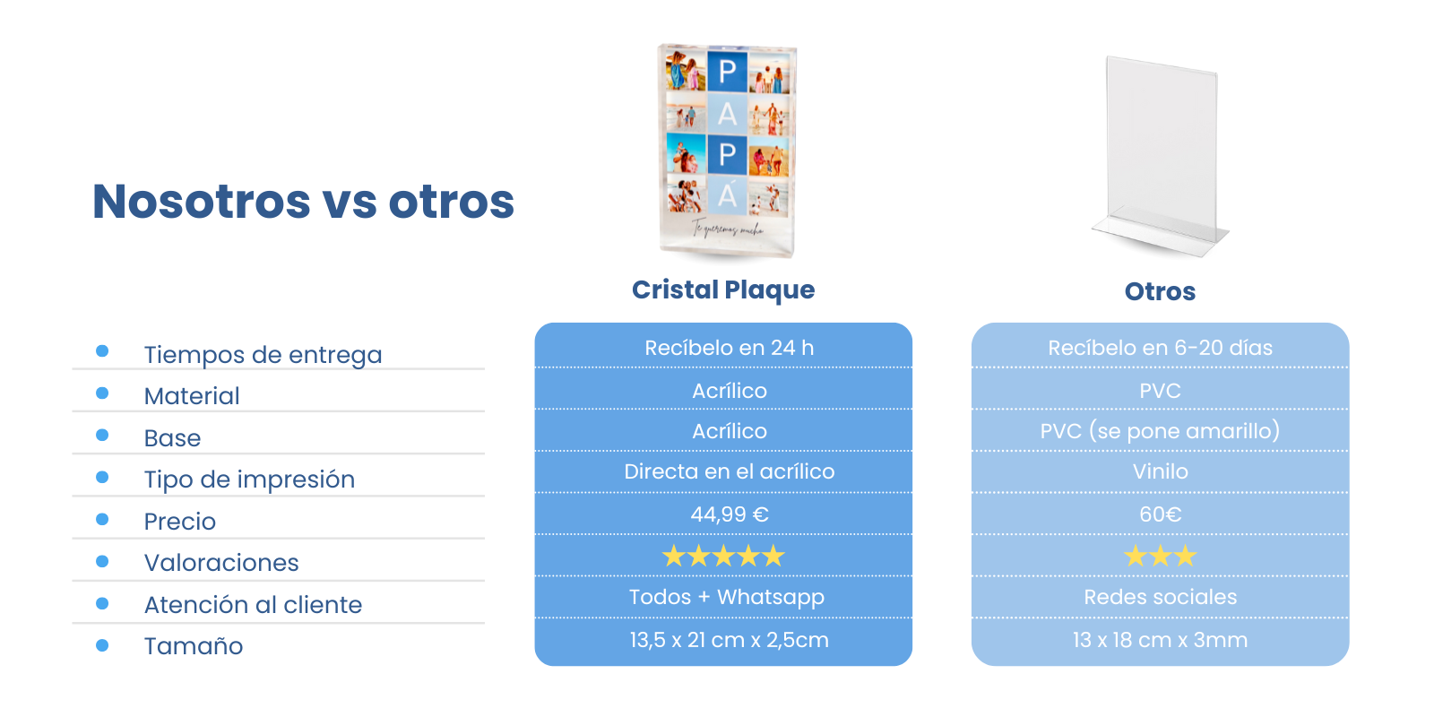 Tienes 6 horas para realizar cambios. Es tan fácil que sólo tienes que mandar un correo con los cambios que necesites y el número de pedido a contacto@cristalplaque.com
