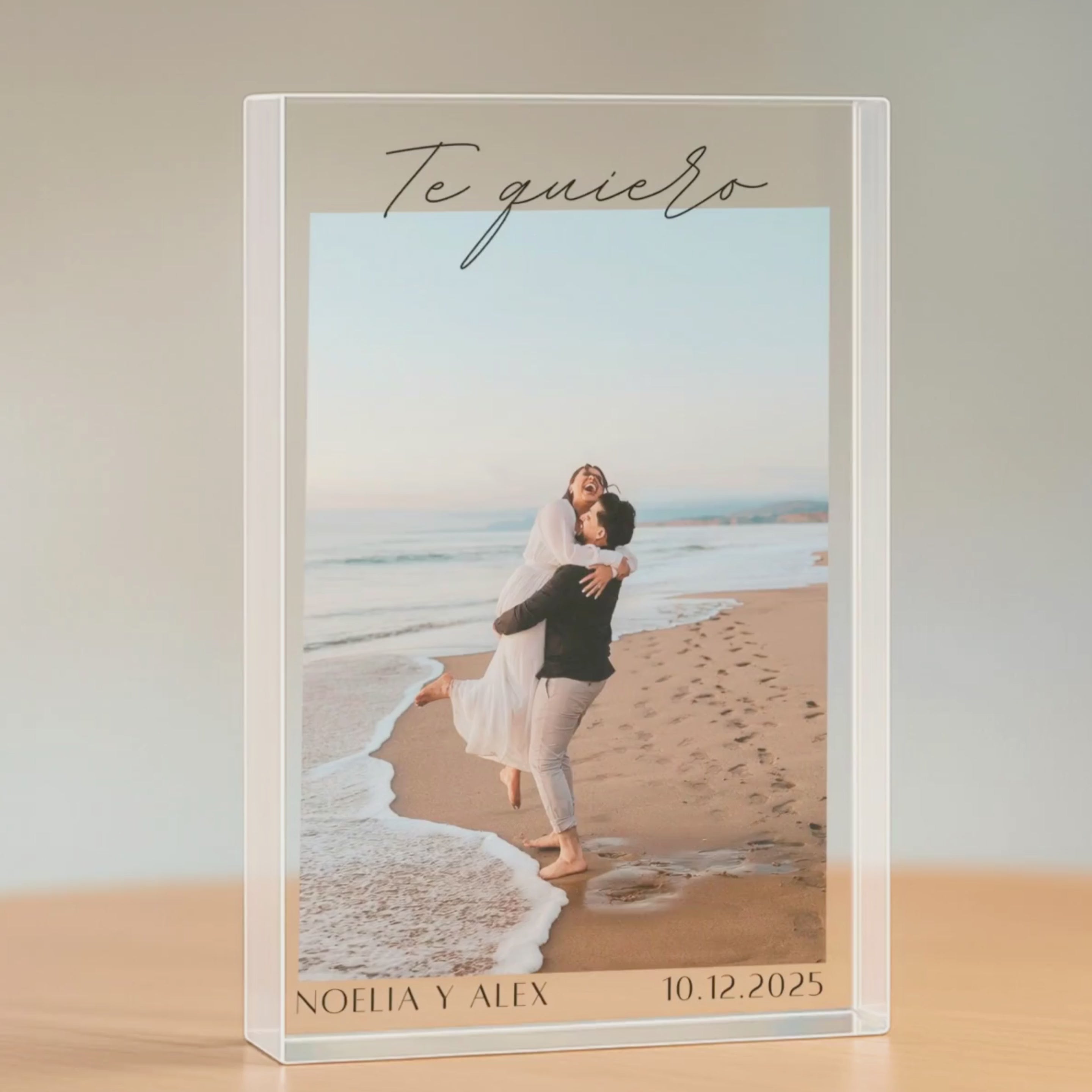 Porque los momentos compartidos merecen convertirse en algo eterno, este bloque personalizado con fotos y dedicatoria es el regalo perfecto para parejas que quieren inmortalizar su historia. Con un diseño transparente elegante que realza tu imágene favorita, podrás añadir fotos significativas y un mensaje especial que capture vuestro vínculo.