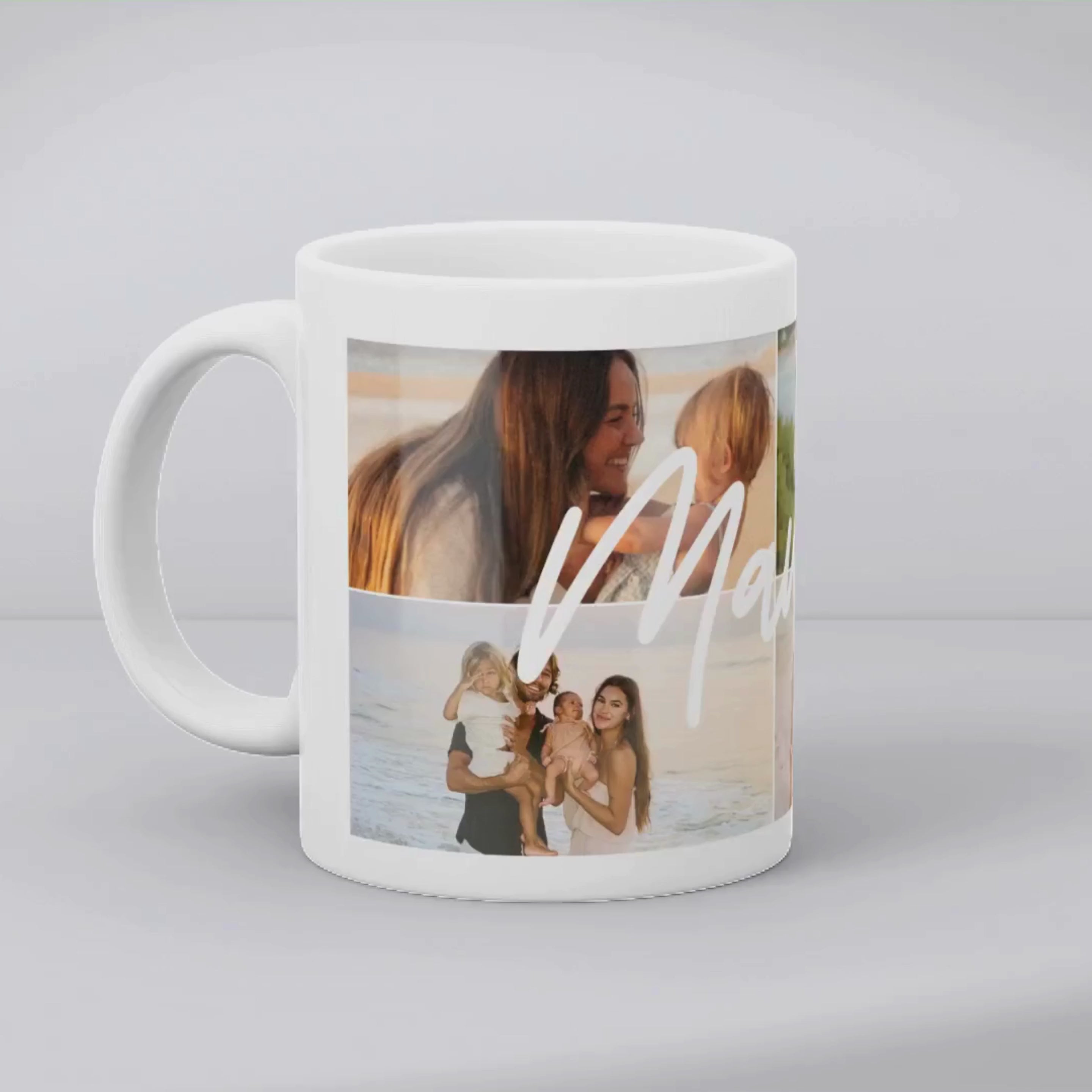 Crea un regalo inolvidable con esta taza personalizada para mamá con 4 fotos en collage, perfecta para llenar sus días de recuerdos y sonrisas. Ideal como regalo para el Día de la Madre, cumpleaños o cualquier ocasión especial.