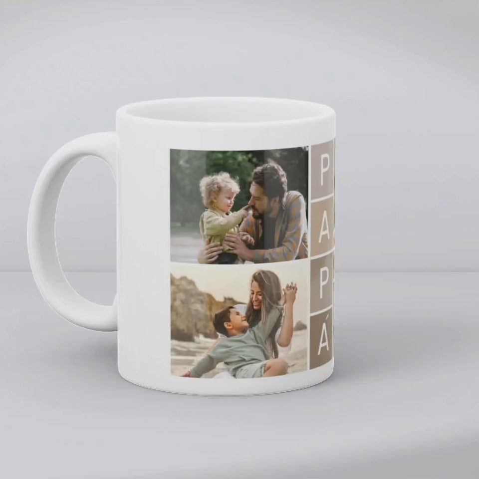 Sorprende a papá con una taza que revela todo tu cariño. El diseño compuesto por 4 fotos especiales y la palabra papá que le sacará una sonrisa cada mañana. Perfecta para el Día del Padre, cumpleaños o simplemente para recordarle cuánto lo quieres.