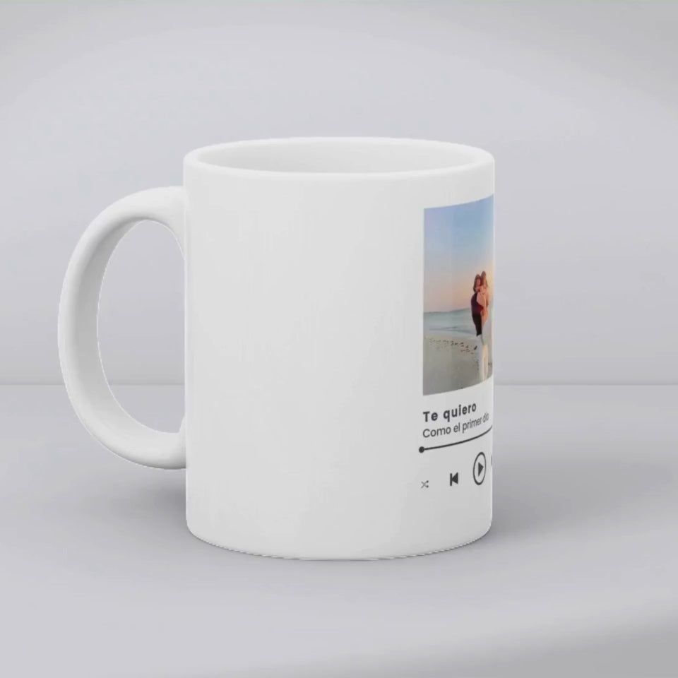 Crea una taza Spotify con la canción personalizada de tus mejores momentos y rinde homenaje a tu persona favorita.
