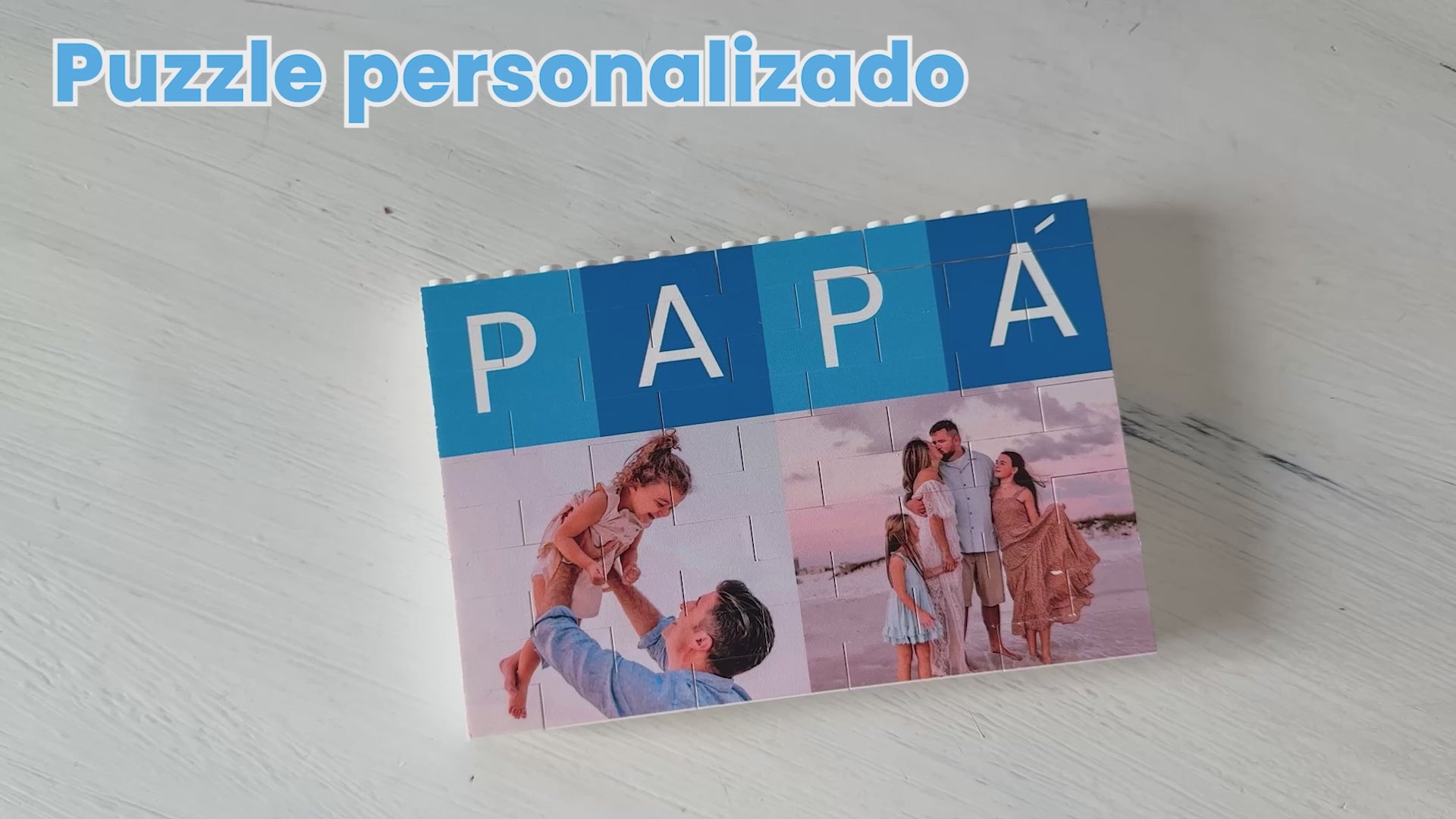 Personalízalo con tus fotos favoritas y crea un detalle especial que sorprenderá desde el primer momento. Cada pieza forma parte de una historia: vuestra historia. A medida que se completa el puzzle, aparece una imagen llena de cariño que recuerda lo importante que es papá en la familia.